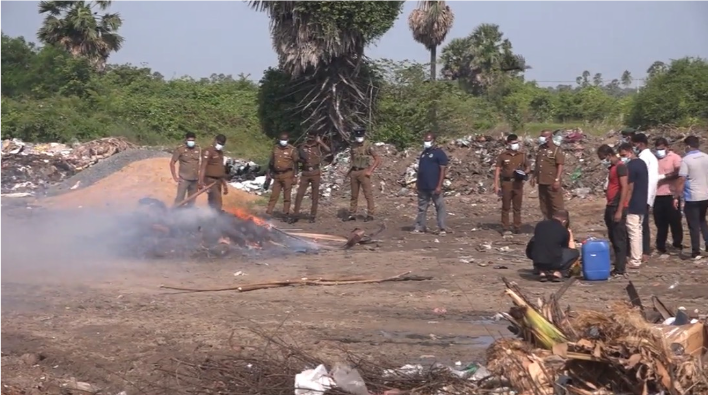 அந்நிலையில் அவற்றில் வழக்குகள் முடிவுற்று, நீதவானினால் அழிக்க உத்தரவிட்டப்பட்ட சுமார் 600 கிலோ கேரளா கஞ்சா நீதாவனின் நேரடி கண்காணிப்பில் பொலிகண்டி குப்பைத்திடலில் அவை தீயிட்டு அழிக்கப்பட்டன