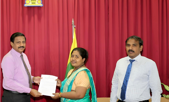 வேலணை பிரதேச செயலகத்திற்கு புதிய உதவி பிரதேச செயலாளராக நியமிக்கப்பட்ட பாமா மோகனமுரளி இன்றைய தினம் (07.01.2026) அரசாங்க அதிபர் பிரதீபன் அவர்களிடம் தனக்கான நியமனக் கடிதத்தினைப் பெற்றுக்கொண்டார்.