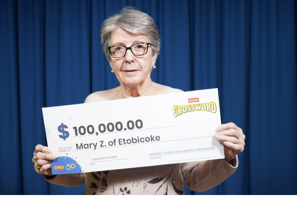 கனடவில் கணவர் நினைவாக லாட்டரி விளையாடிய டொராண்டோவைச் சேர்ந்த 83 வயது மூதாட்டி ஒருவர் 1 இலட்சம் டொலர் பரிசு வென்றுள்ளார்.
