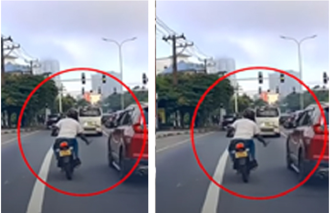 மோட்டார் சைக்கிளில் வந்த நபர் தனது கையில் வைத்திருந்த ஆயுதம் போன்ற ஒரு பொருளைக் கொண்டு வீதியில் பயணித்த வாகனங்கள் மீது தாக்குதல் நடத்தியுள்ளார்.