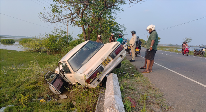 யாழ்ப்பாணம் – மந்திகை வீதியில் இன்று இடம்பெற்ற இந்த விபத்தில், காரின் கட்டுப்பாட்டை இழந்த சாரதி, அதனை வீதியோரத்திலிருந்த பாலத்திற்குள் செலுத்தியமையே விபத்துக்குக் காரணம் எனத் தெரிவிக்கப்படுகிறது.