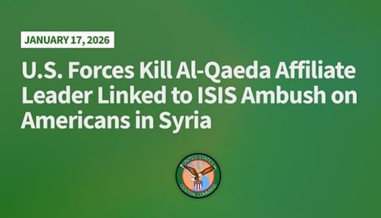 சிரியா மீது நடத்தப்பட்ட தாக்குதலில் அல்-காய்தா பயங்கரவாத அமைப்பின் முக்கிய தலைவன் கொல்லப்பட்டதாக அமெரிக்கா அறிவித்துள்ளது.