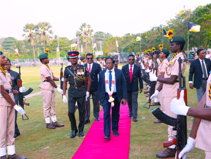 விளையாட்டரங்குக்கு வருகை தந்த ஆளுநரை, தேசிய மாணவர் படையணியின் அதிகாரிகள் சம்பிரதாயபூர்வமாக வரவேற்றனர். அதனைத் தொடர்ந்து அணிவகுப்பு மரியாதையை ஆளுநர் பார்வையிட்டார்.