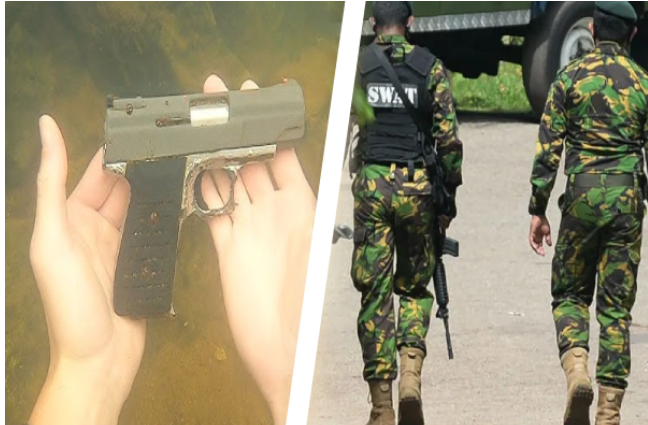 தண்ணீர் தொட்டியில் கைத்துப்பாக்கி; ,பொலிஸார் அதிரடி