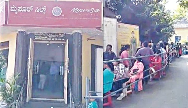 பெங்களூரு: மைசூரு பட்டுப் புடவைகளை வாங்க அதிகாலை 4 மணிக்கு வரிசையில் நின்ற பெண்கள்