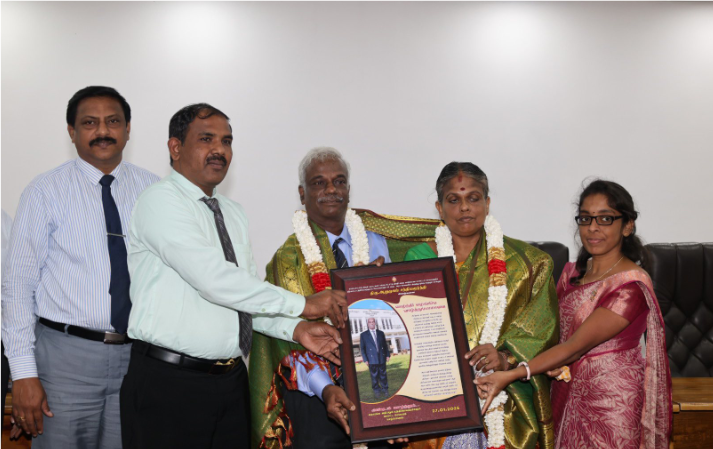 அதனைத் தொடர்ந்து நிர்வாக உத்தியோகத்தர் சத்தியமூர்த்திக்கும் அவர் பாரியாருக்கும் பொன்னாடை அணிவித்து கௌரவிக்கப்பட்டதுடன், நினைவுச் சின்னமும் வழங்கப்பட்டது.