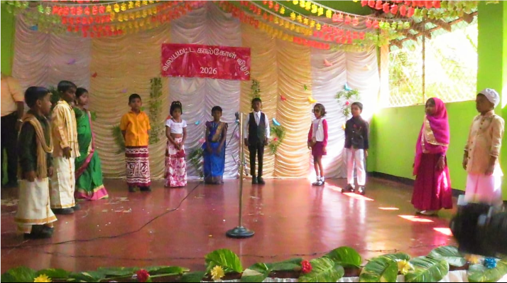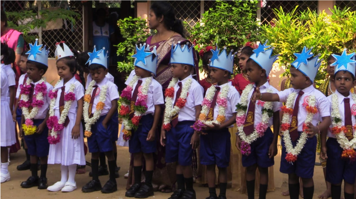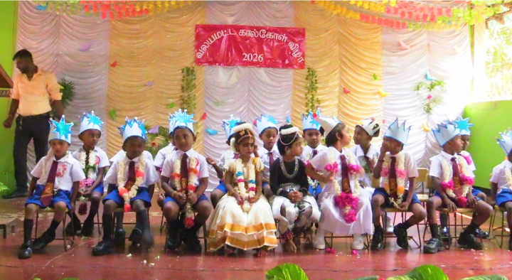 முதலில், தரம் இரண்டு மாணவர்களால், தரம் ஒன்று மாணவர்கள் மலர் மாலைகள் அணிவித்து வரவேற்கப்பட்டனர்.
