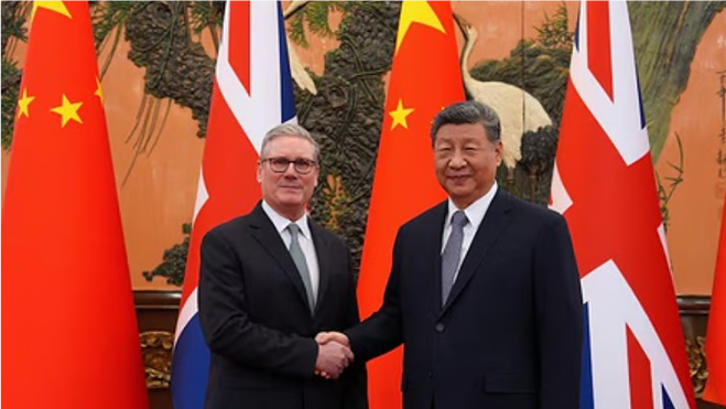 இந்நிலையில், பெய்ஜிங்கில் சீன அதிபா் ஷி ஜின்பிங்கை பிரதமா் கியா் ஸ்டாா்மா் வியாழக்கிழமை சந்தித்துப் பேசினாா். சுமாா் 80 நிமிஷங்கள் நீடித்த இந்த இருதரப்பு ஆலோசனையில், வா்த்தகம், பாதுகாப்பு, பருவநிலை மாற்றம் உள்ளிட்ட முக்கிய விவகாரங்கள் குறித்து விவாதிக்கப்பட்டன.