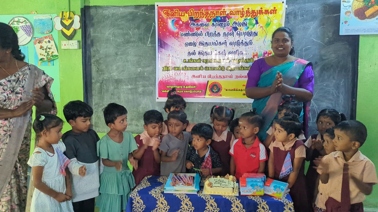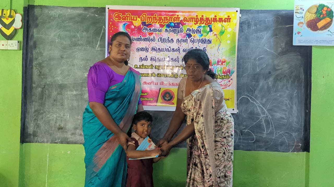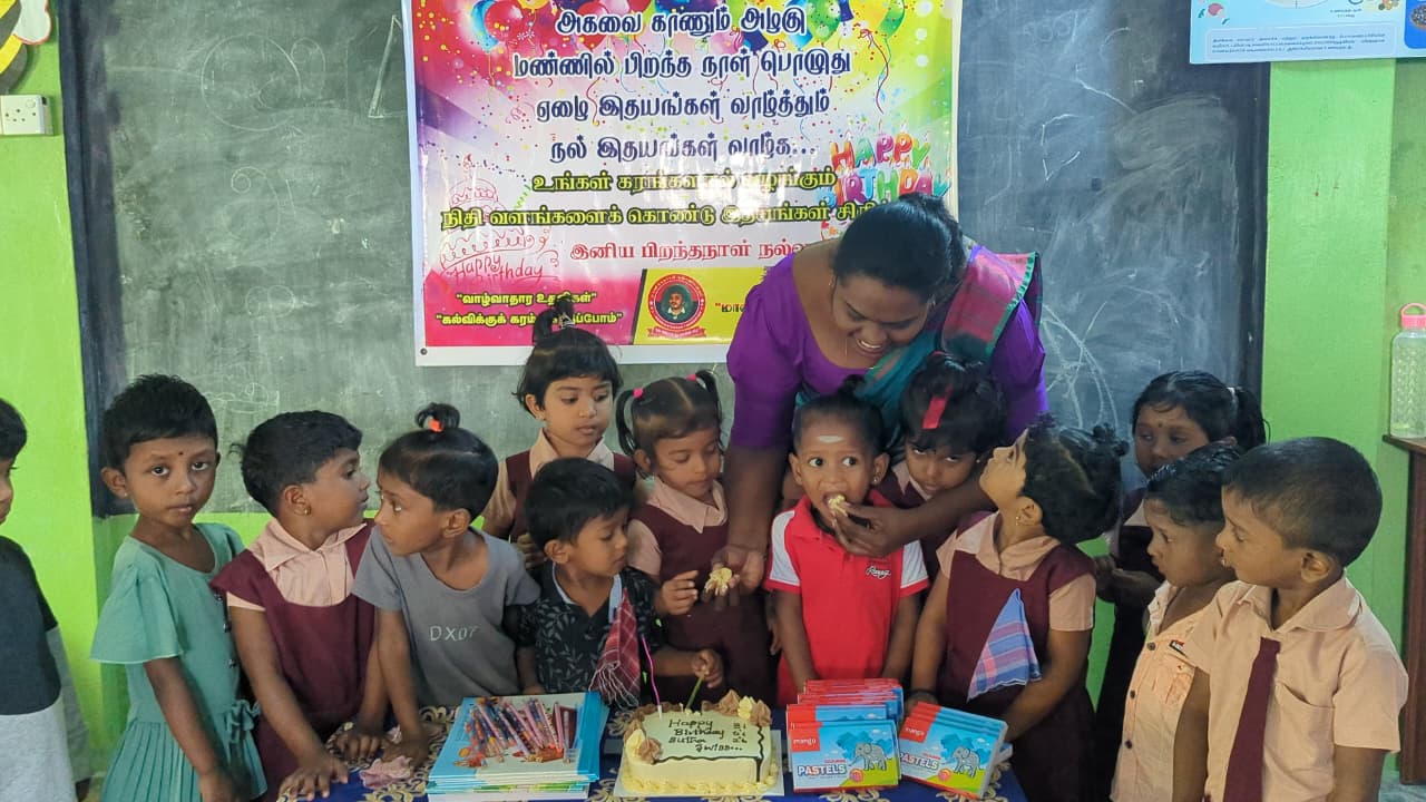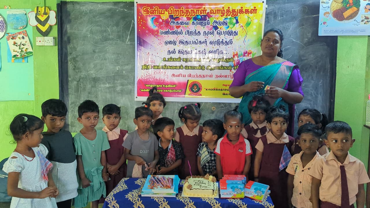 அந்த வகையில் இன்றைய தினம் முன்பள்ளி மாணவ,மாணவிகள் ஆசிரியர்கள் மற்றும் சிலர் கலந்து கொண்டு திரு சுதாகரன் அவர்களது பிறந்தநாள் கொண்டாட்ட நிகழ்வில் பங்கு கொண்டனர்.