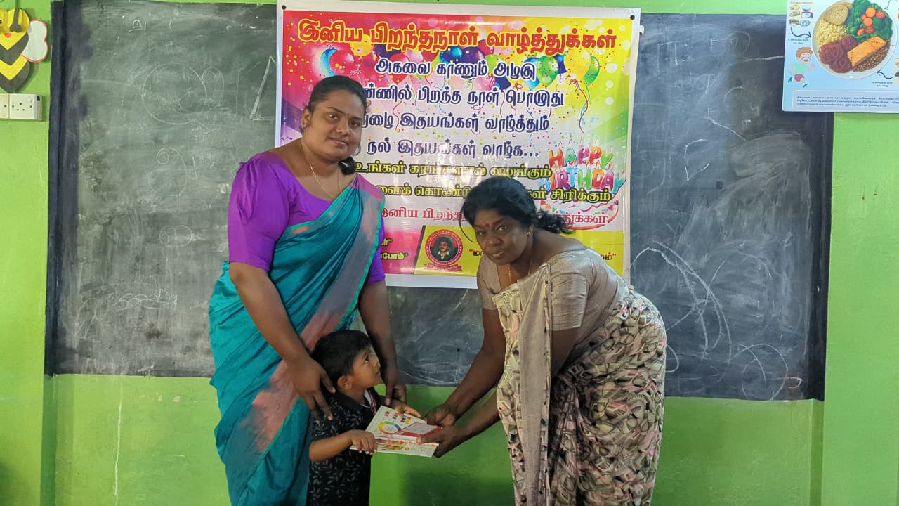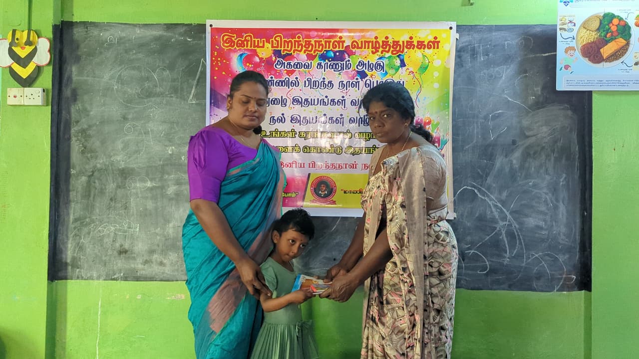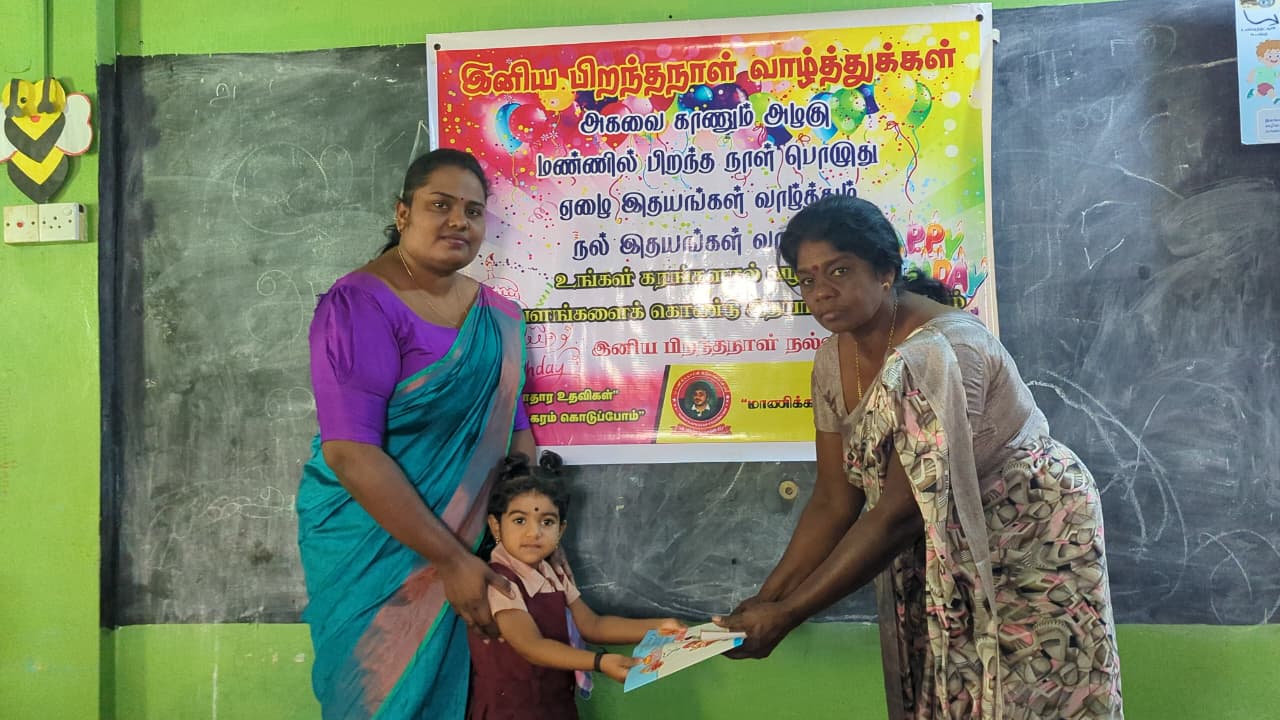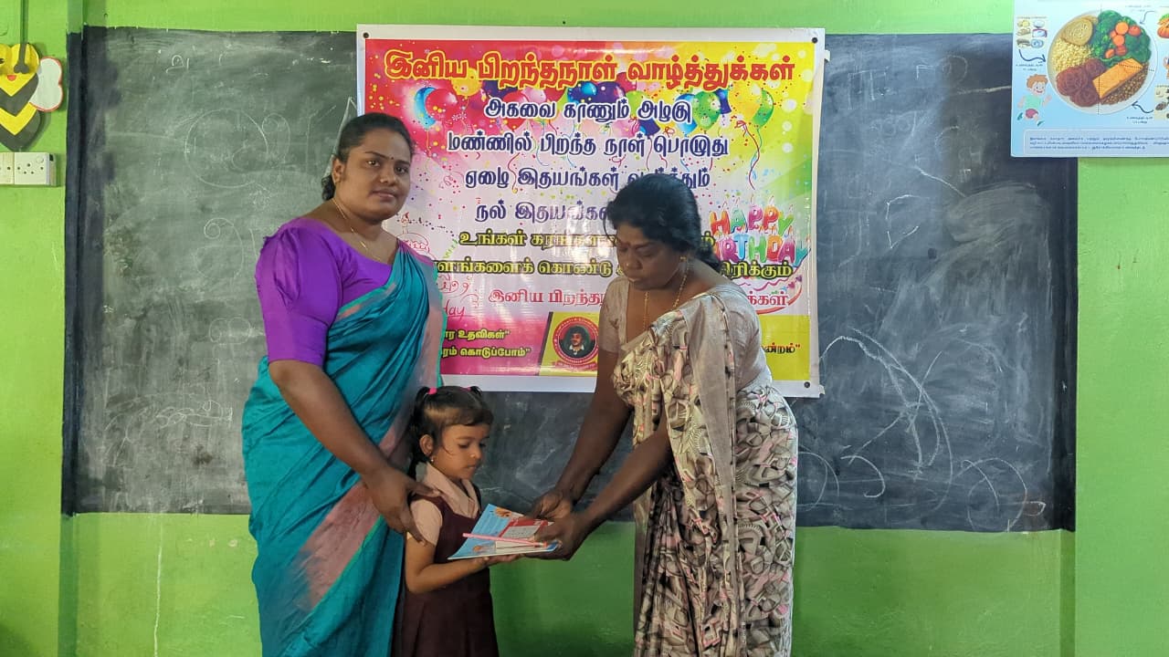 அந்த வகையில் இன்றைய தினம் முன்பள்ளி மாணவ,மாணவிகள் ஆசிரியர்கள் மற்றும் சிலர் கலந்து கொண்டு திரு சுதாகரன் அவர்களது பிறந்தநாள் கொண்டாட்ட நிகழ்வில் பங்கு கொண்டனர்.