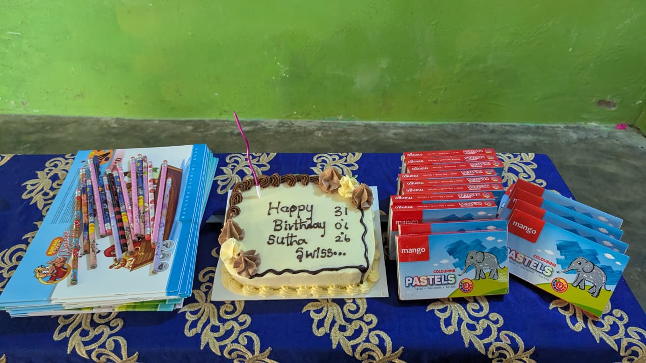 நிகழ்வில் கலந்துகொண்ட அனைவருக்கும் பிறந்த நாள் சிற்றுண்டி வழங்கப்பட்டது. கற்றல் உபகரணங்களாக சித்திரக் கொப்பிகளும், கலர் சொக் பெட்டிகள், பென்சில்களும் வழங்கி வைக்கப்பட்டது.