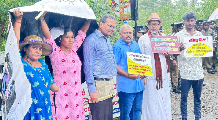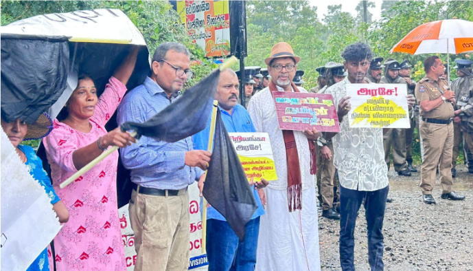யாழ்ப்பாணம், தையிட்டி, திஸ்ஸ விகாரைக்கு எதிராக இன்றைய தினம் ஞாயிற்றுக்கிழமை கொட்டும் மழைக்குள் போராட்டம் முன்னெடுக்கப்பட்டது.