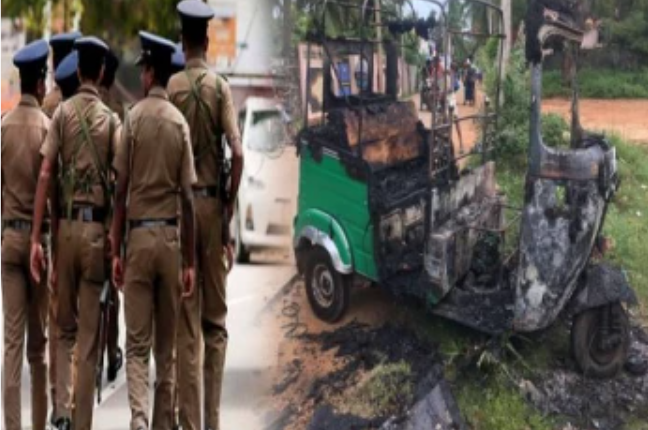 திடீரென தீப்பிடித்து எரிந்த முச்சக்கர வண்டி ; தீவிர விசாரணையில் பொலிஸார்