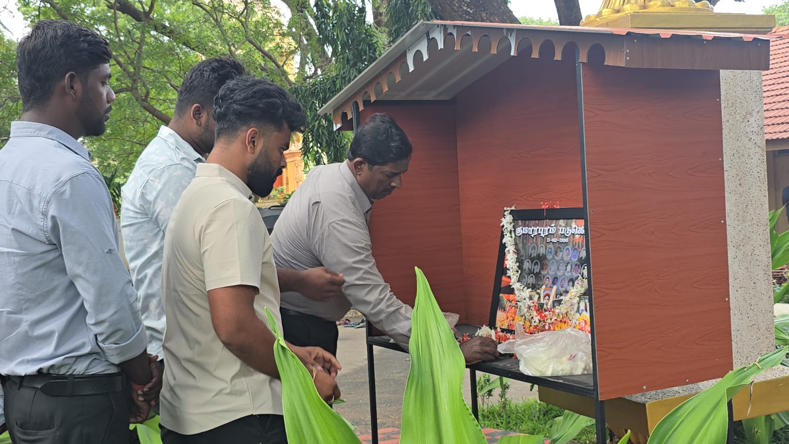 யாழ்ப்பாணப் பல்கலைக்கழக மாணவர்களின் ஏற்பாட்டில் நடைபெற்ற நினைவேந்தலில் உயிரிழந்தவர்களுக்கு மலர்தூவி, சுடரேற்றி, அஞ்சலி செலுத்தப்பட்டது.