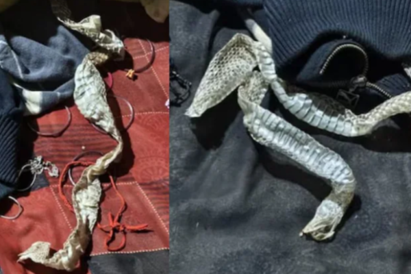 அவர்கள் உடனடியாகவே இது இயற்கைக்கு மாறானது அல்ல என்று தெரிவித்தனர். பாம்பின் உரித்த தோலும், ஆடைகளும் யாரோ திட்டமிட்டு அடுக்கி வைத்திருப்பது போலத் தெரிந்தது.