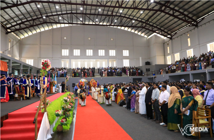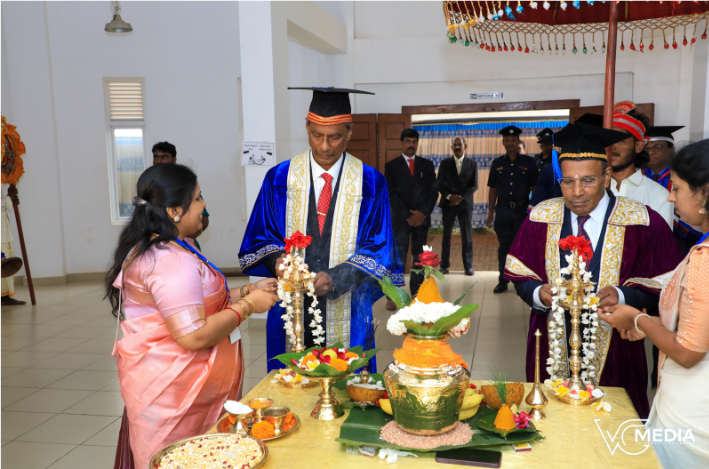 பல்கலைக்கழகத்தில் அமைந்துள்ள ஸ்ரீ பார்வதி சமேத பரமேஸ்வரன் ஆலயத்தில் இடம்பெற்ற விசேட பூஜை வழிபாடுகளுடன், பல்கலைக்கழகத்தின் விரிவுரையாளர்கள், அலுவலர்கள், பேராசிரியர்கள், பீடாதிபதிகள், நிதியாளர், நூலகர், மற்றும் பதிவாளர் அணிவகுத்து வர, கொடி குடை ஆலவட்டங்கள் சகிதம் விழா அரங்குக்கு வருகை தந்த துணைவேந்தரும், வேந்தரும் பட்டங்களையும், பரிசில்கள் மற்றும் தகைமைச் சான்றிதழ்களையும் வழங்கினர்.