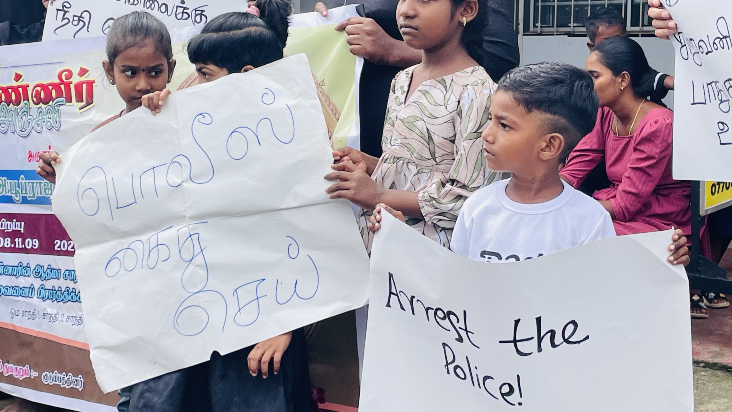 யாழ்ப்பாணம் அல்லைப்பிட்டி பகுதியில் பொலிசாரின் துப்பாக்கி சூட்டில் படுகொலையான சிறுவனுக்கு நீதி கோரி யாழ்ப்பாணத்தில் போராட்டம் முன்னெடுக்கப்பட்டது.