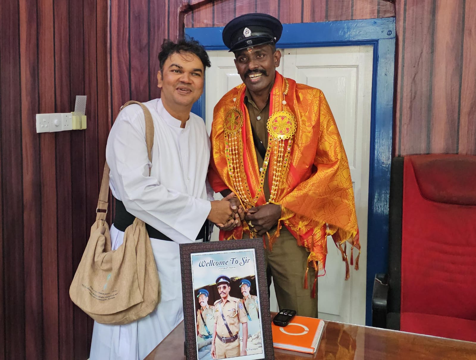 தெல்லிப்பழை துர்க்கை அம்மன் ஆலயத்தில் பூஜை வழிபாடுகளில் கலந்து கொண்ட பின்னர் சுன்னாகம் பொலிஸ் நிலையத்தில் கடமையேற்க சென்ற வேளை பொலிஸ் நிலையத்தில் மாலை அணிவித்து, பொன்னாடை போர்த்தி வரவேற்பளிக்கப்பட்டது.