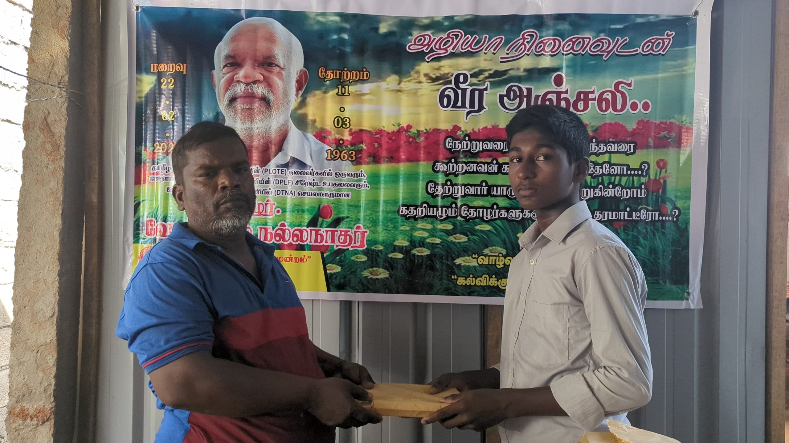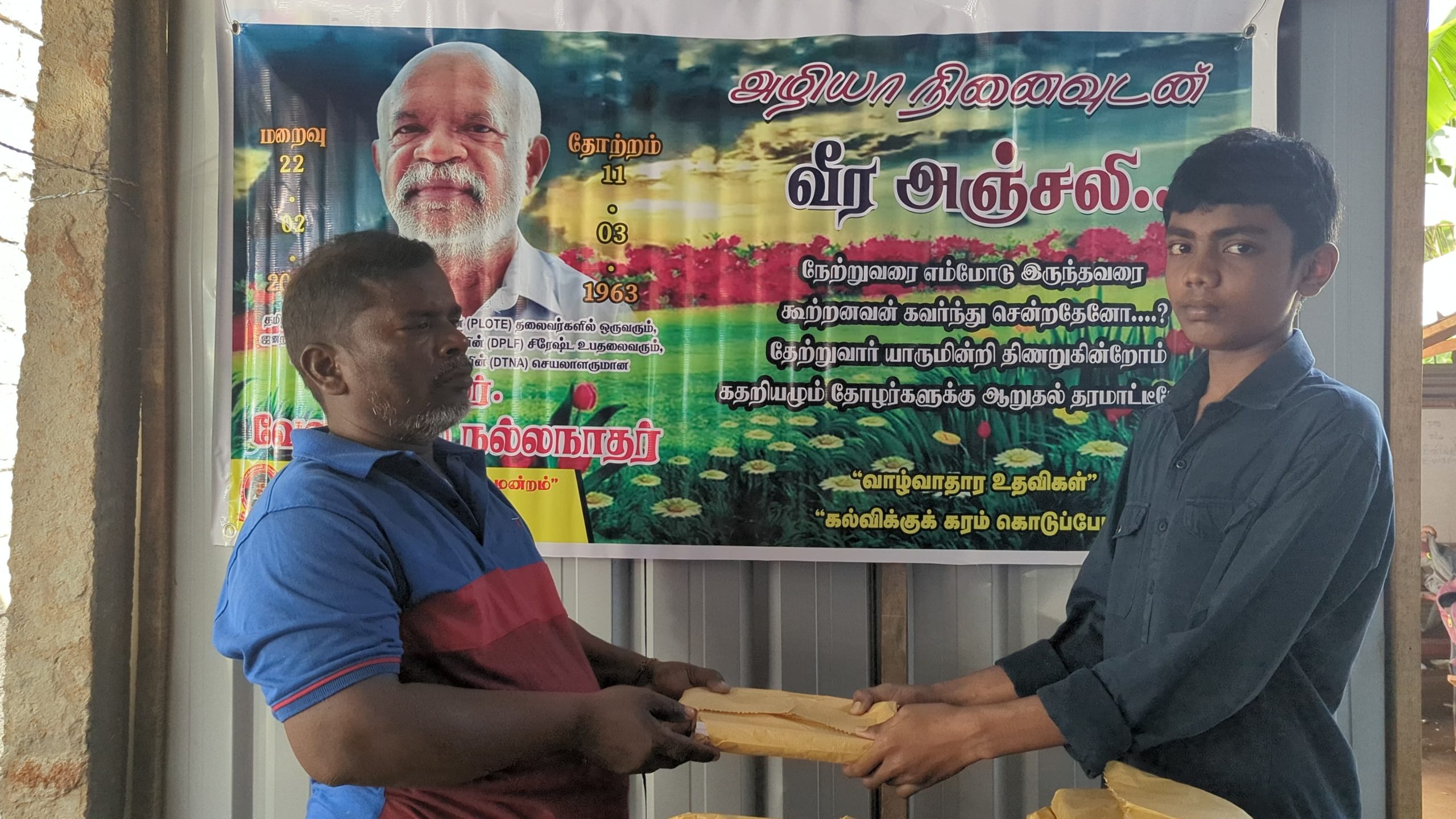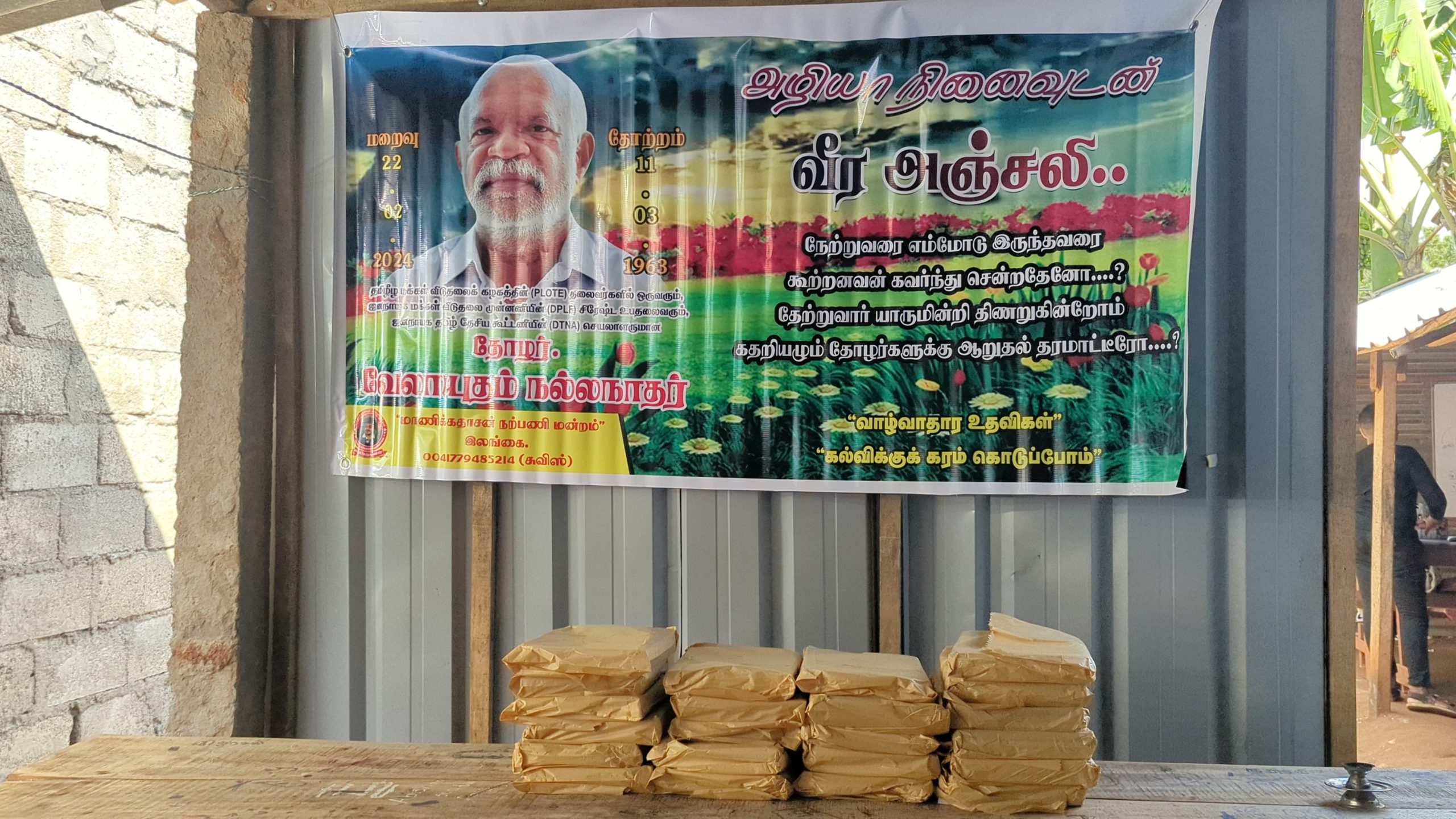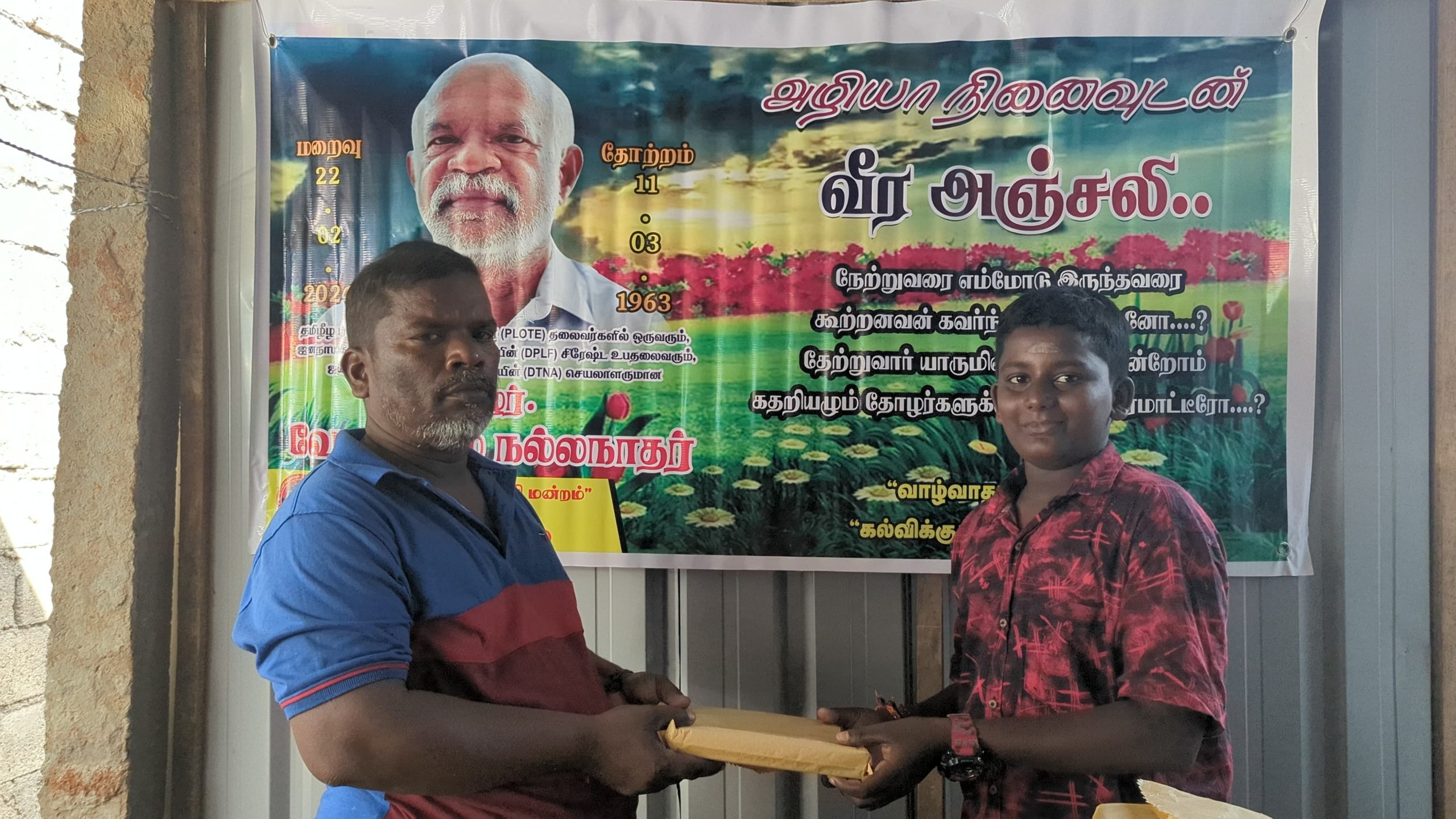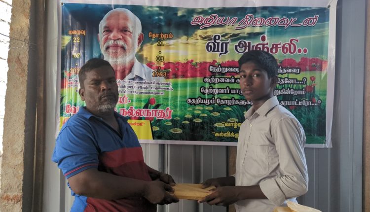 இன்று அவரின் மறைவு இரு வருடத்தை கடந்த போதிலும், அவர் விதைத்த நியாயத்தின் விதைகள் எப்போது விருட்சமாகும் எனும் உயரிய நோக்கில் செயல்படும் தோழர்கள் ஆதரவாளர்களின் அன்ஜசாலி நிகழ்வாக மேற்படி கற்றலுக்கான அப்பியாசக் கொப்பிகள் வழங்கும் நிகழ்வு இன்றையதினம் நடைபெற்றது.