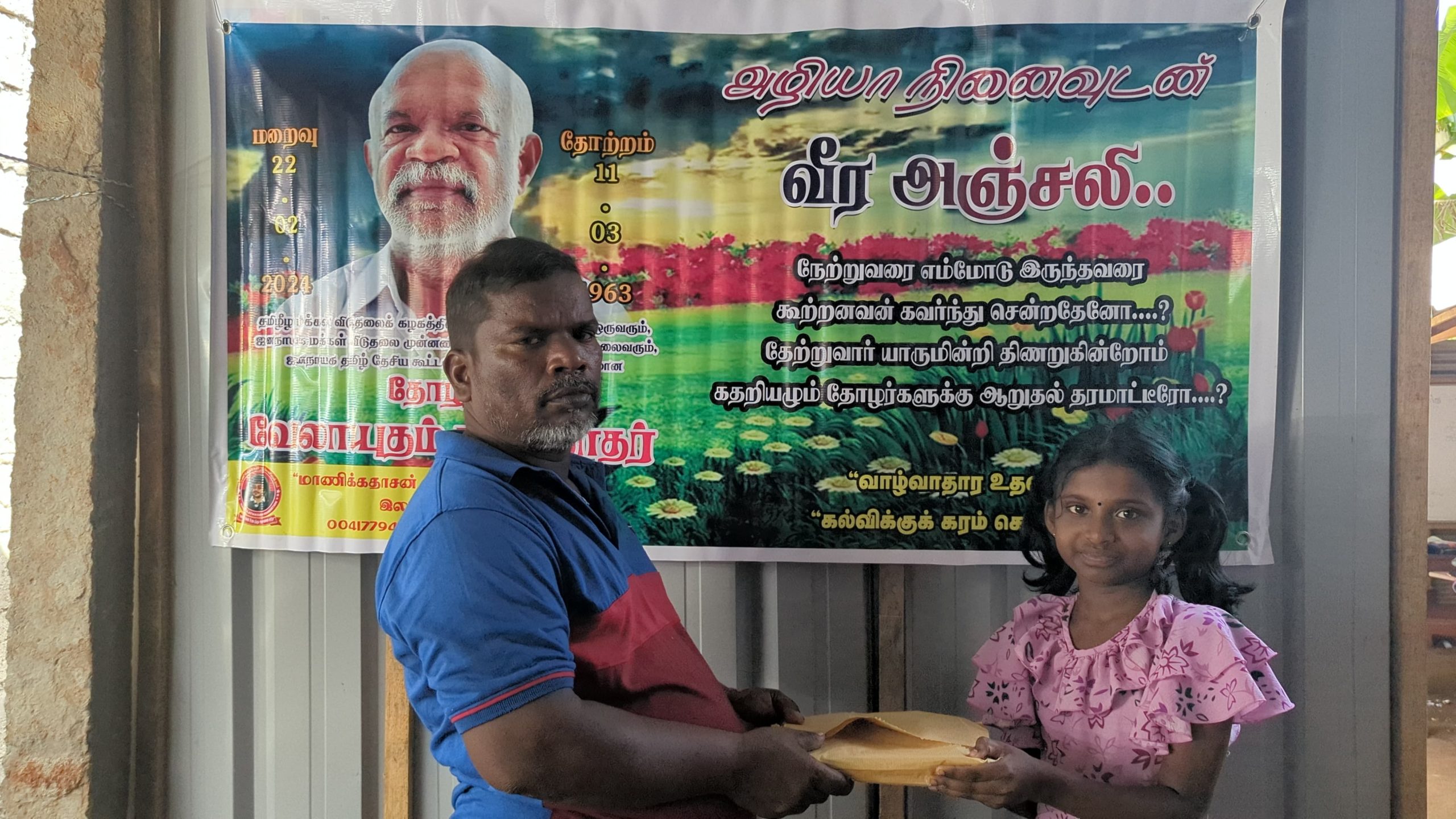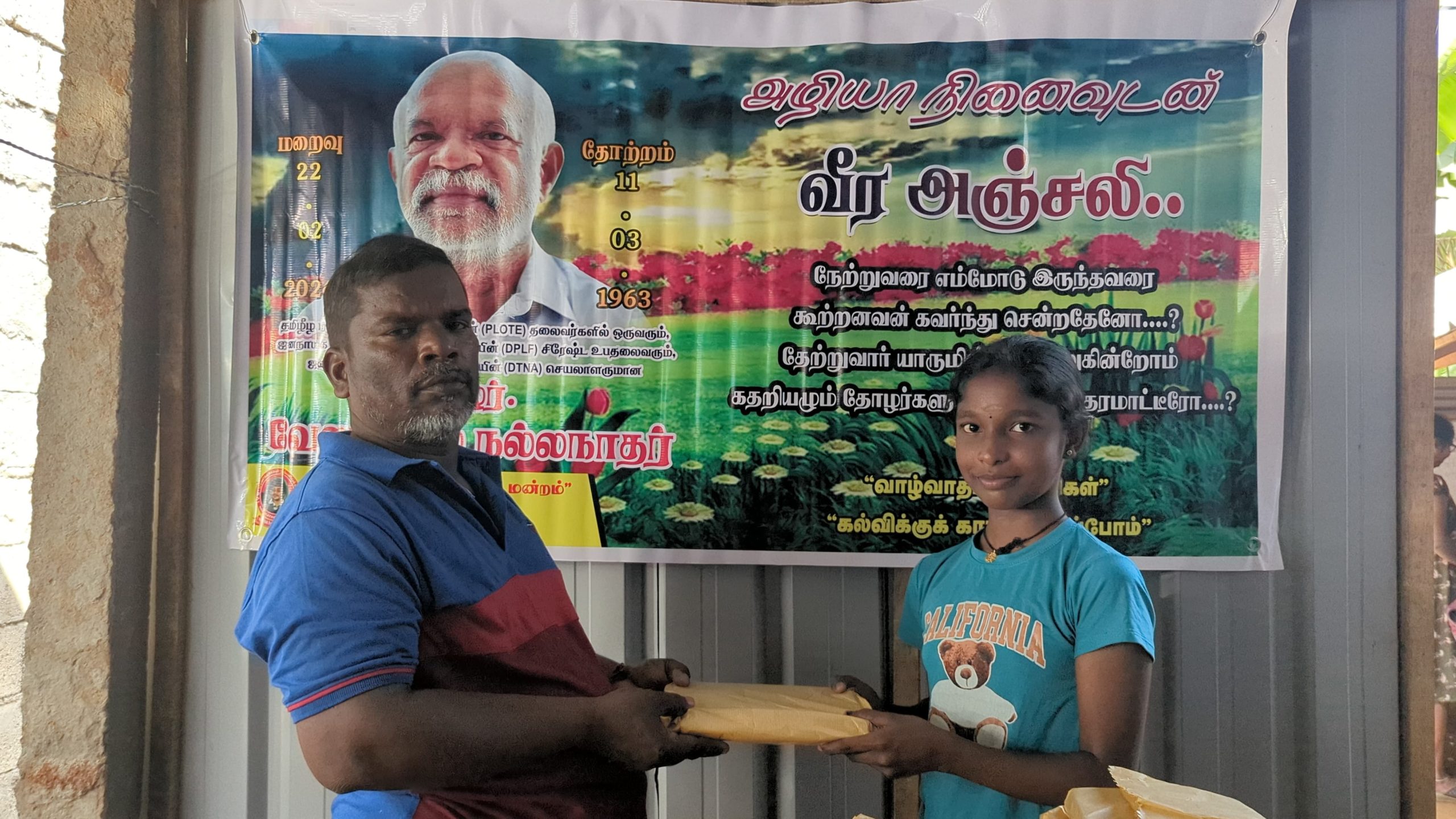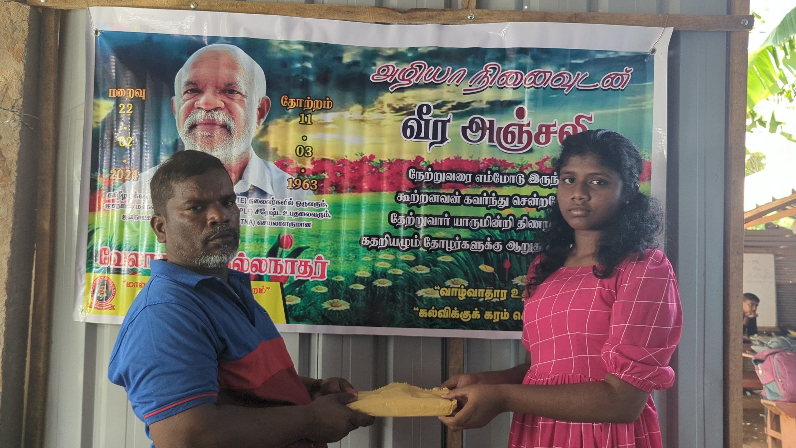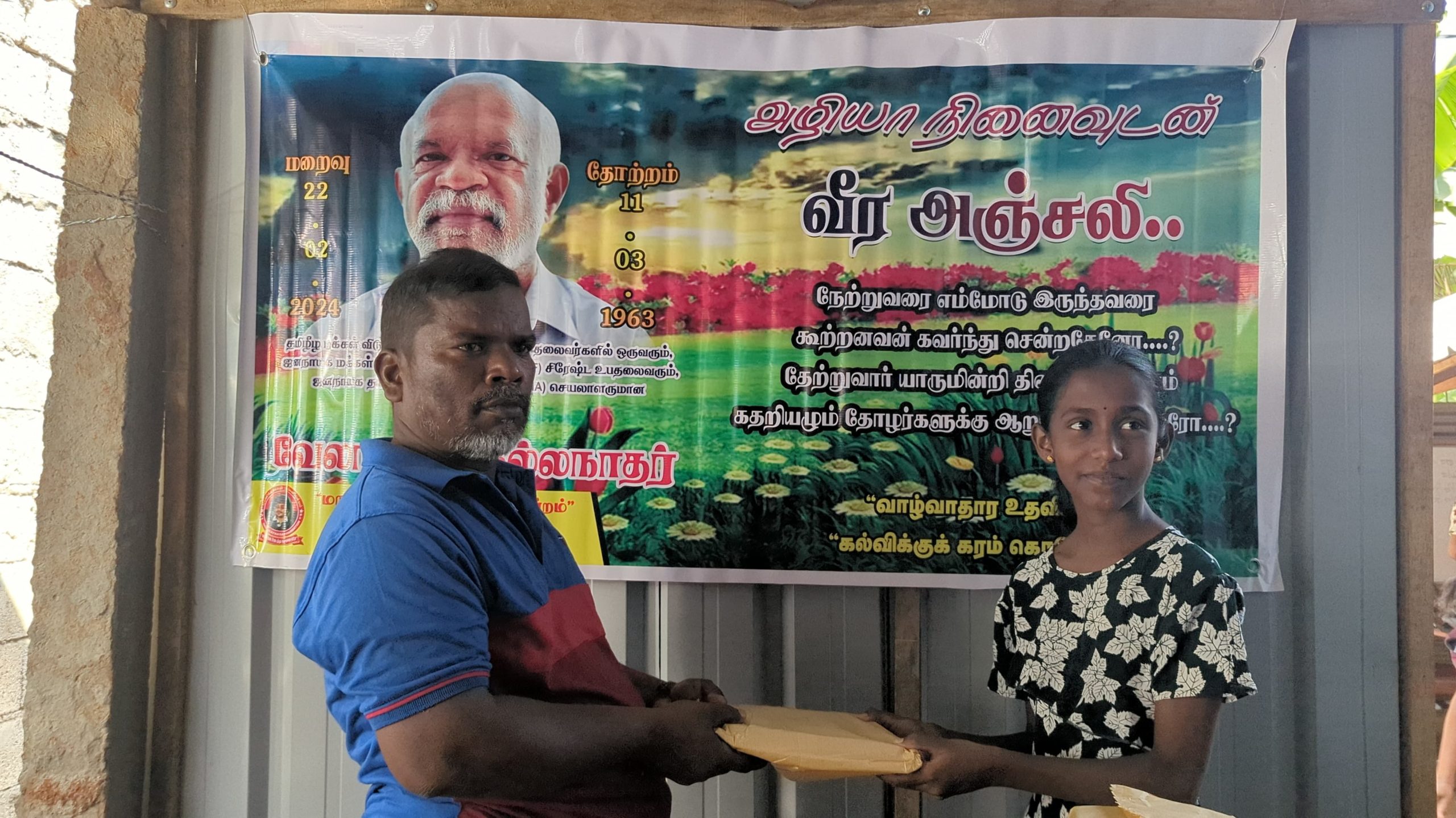 இன்று அவரின் மறைவு இரு வருடத்தை கடந்த போதிலும், அவர் விதைத்த நியாயத்தின் விதைகள் எப்போது விருட்சமாகும் எனும் உயரிய நோக்கில் செயல்படும் தோழர்கள் ஆதரவாளர்களின் அன்ஜசாலி நிகழ்வாக மேற்படி கற்றலுக்கான அப்பியாசக் கொப்பிகள் வழங்கும் நிகழ்வு இன்றையதினம் நடைபெற்றது.