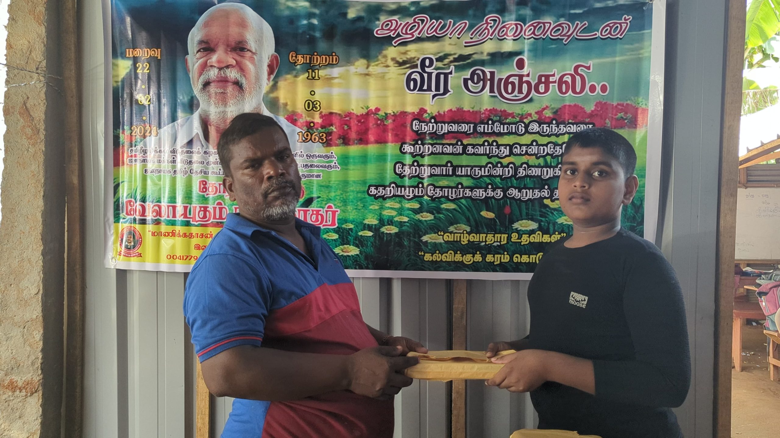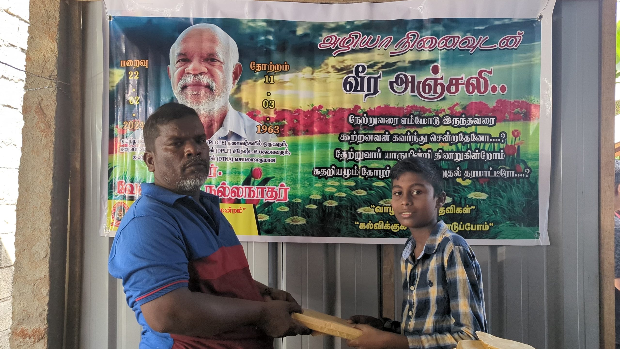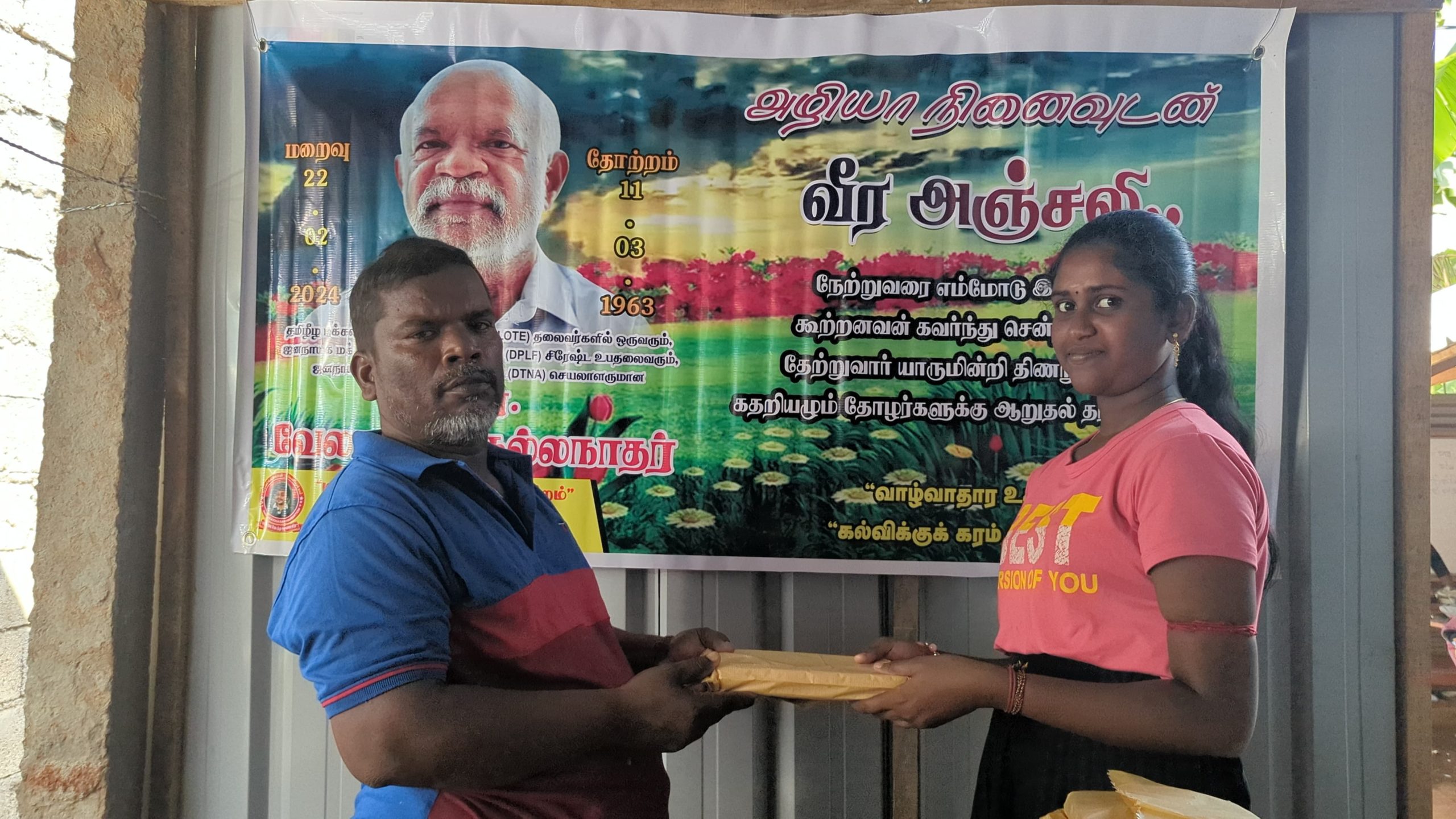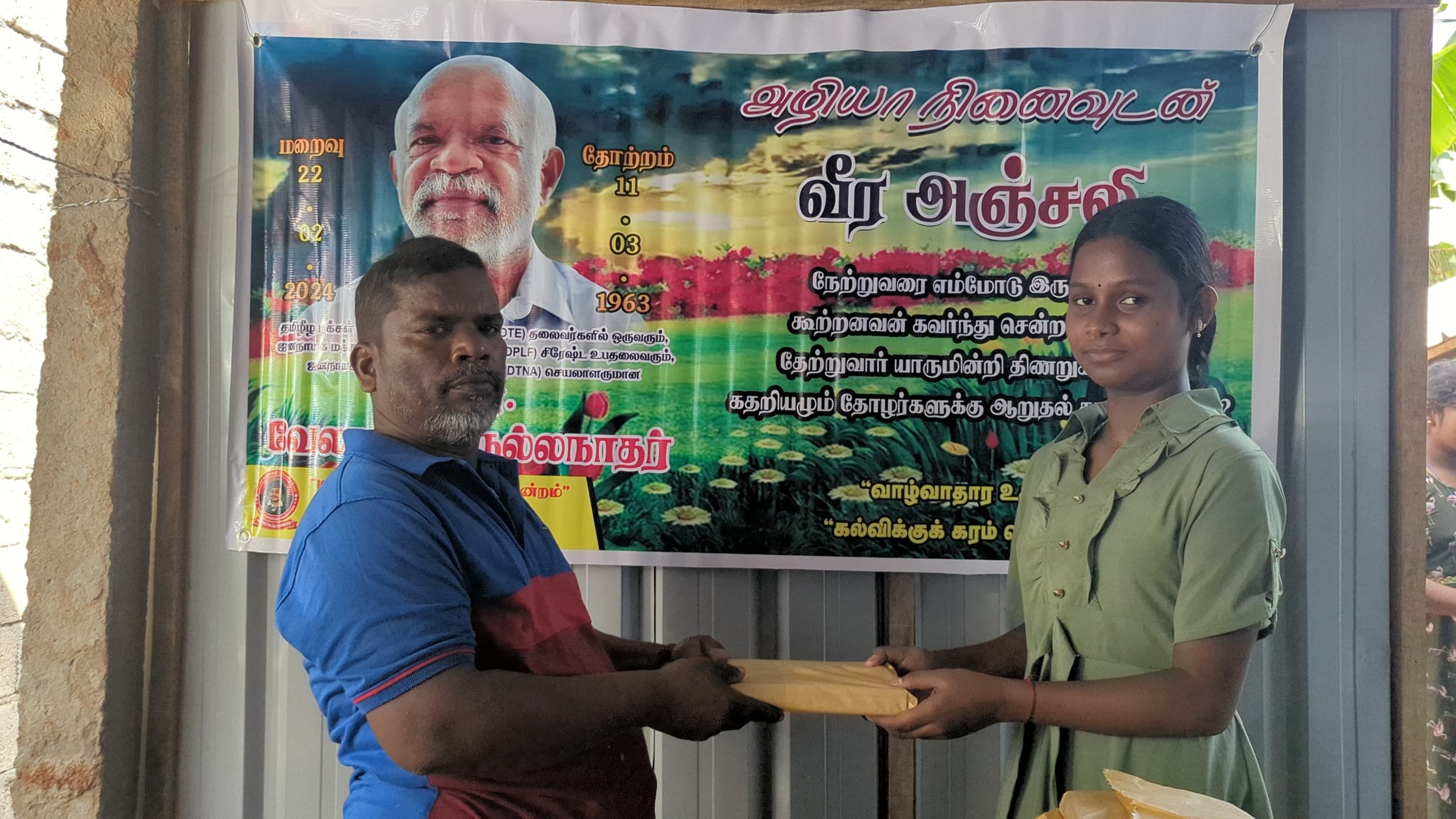 இன்று அவரின் மறைவு இரு வருடத்தை கடந்த போதிலும், அவர் விதைத்த நியாயத்தின் விதைகள் எப்போது விருட்சமாகும் எனும் உயரிய நோக்கில் செயல்படும் தோழர்கள் ஆதரவாளர்களின் அன்ஜசாலி நிகழ்வாக மேற்படி கற்றலுக்கான அப்பியாசக் கொப்பிகள் வழங்கும் நிகழ்வு இன்றையதினம் நடைபெற்றது.