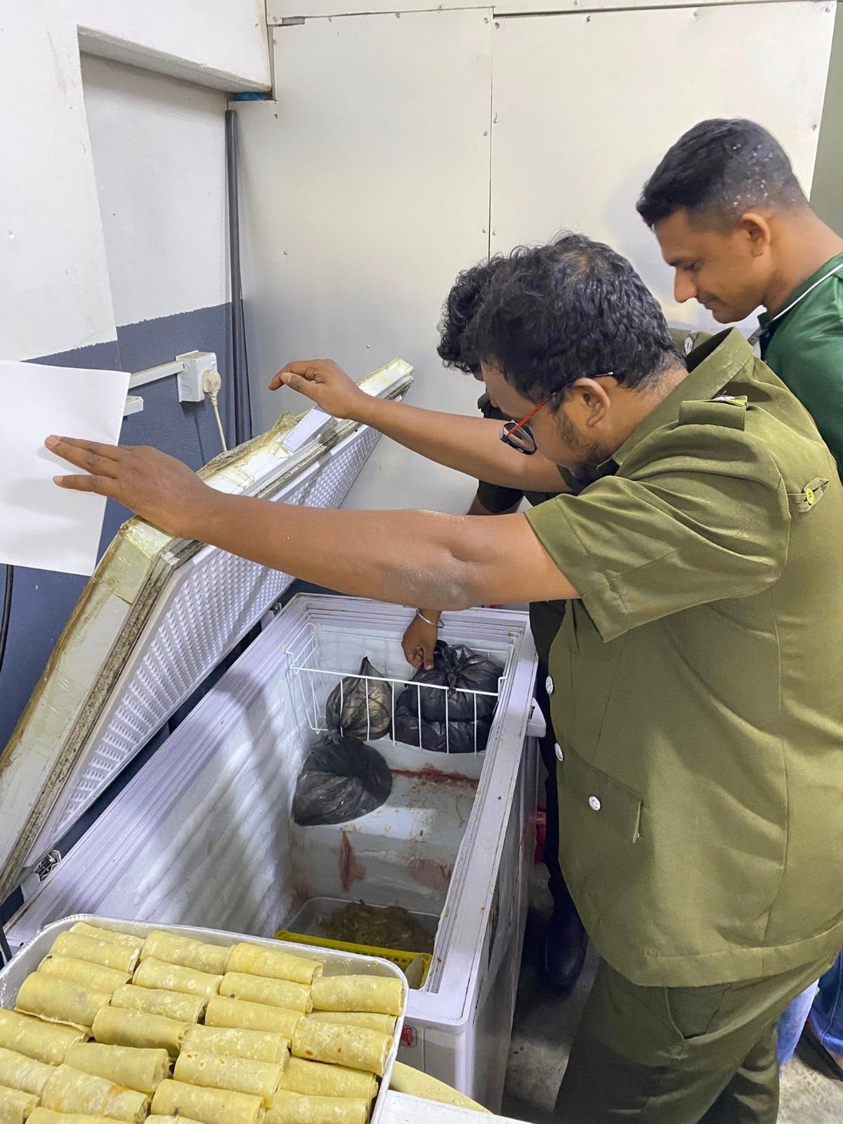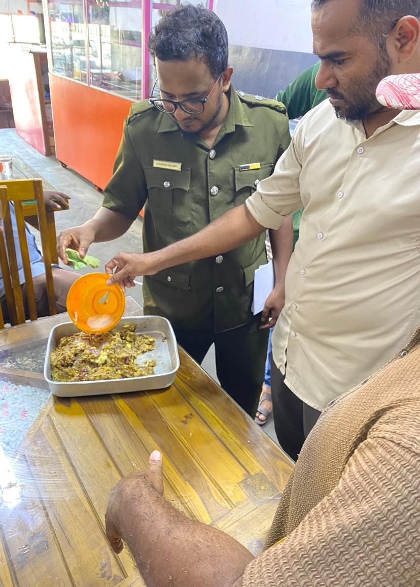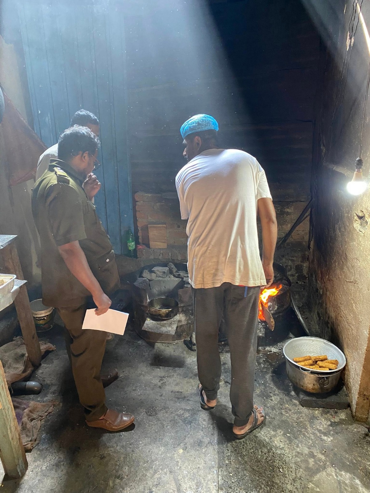 இதன் போது உணவுப் பொருட்களின் தரம் சேமிப்பு முறை சுற்றுப்புறத் தூய்மை பணியாளர்களின் தனிநபர் சுகாதாரம் சமயலறைகள் உள்ளிட்ட அம்சங்கள் விரிவாக ஆய்வு செய்யப்பட்டது.