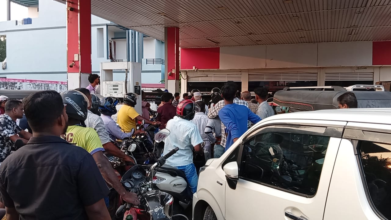 தற்போது எரிபொருள் நிரப்பு நிலையங்களின் முன்பாக என்றுமில்லாதளவில் நீண்ட வரிசைகளில் மக்கள் முண்டியடிக்க ஆரம்பித்துள்ளனர்.