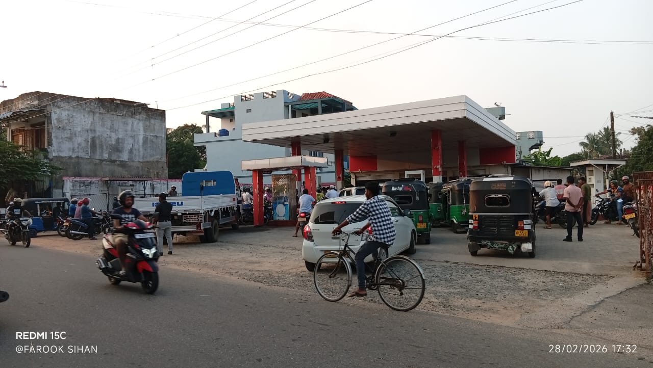 பாரசீக வளைகுடாவில் ஏற்பட்டுள்ள யுத்த நிலைமையினால் எரிபொருளுக்கு பாரிய தட்டுப்பாடு ஏற்படும் என்ற அச்சத்தில் அம்பாறை மாவட்டத்தில் பெற்றோல் நிரப்பு நிலையங்களில் திடீரென மக்கள் வரிசைகளில் நின்று வாகனங்களுக்கு பெற்றோல் நிரப்புவதில் முண்டியடிக்கின்றனர்.