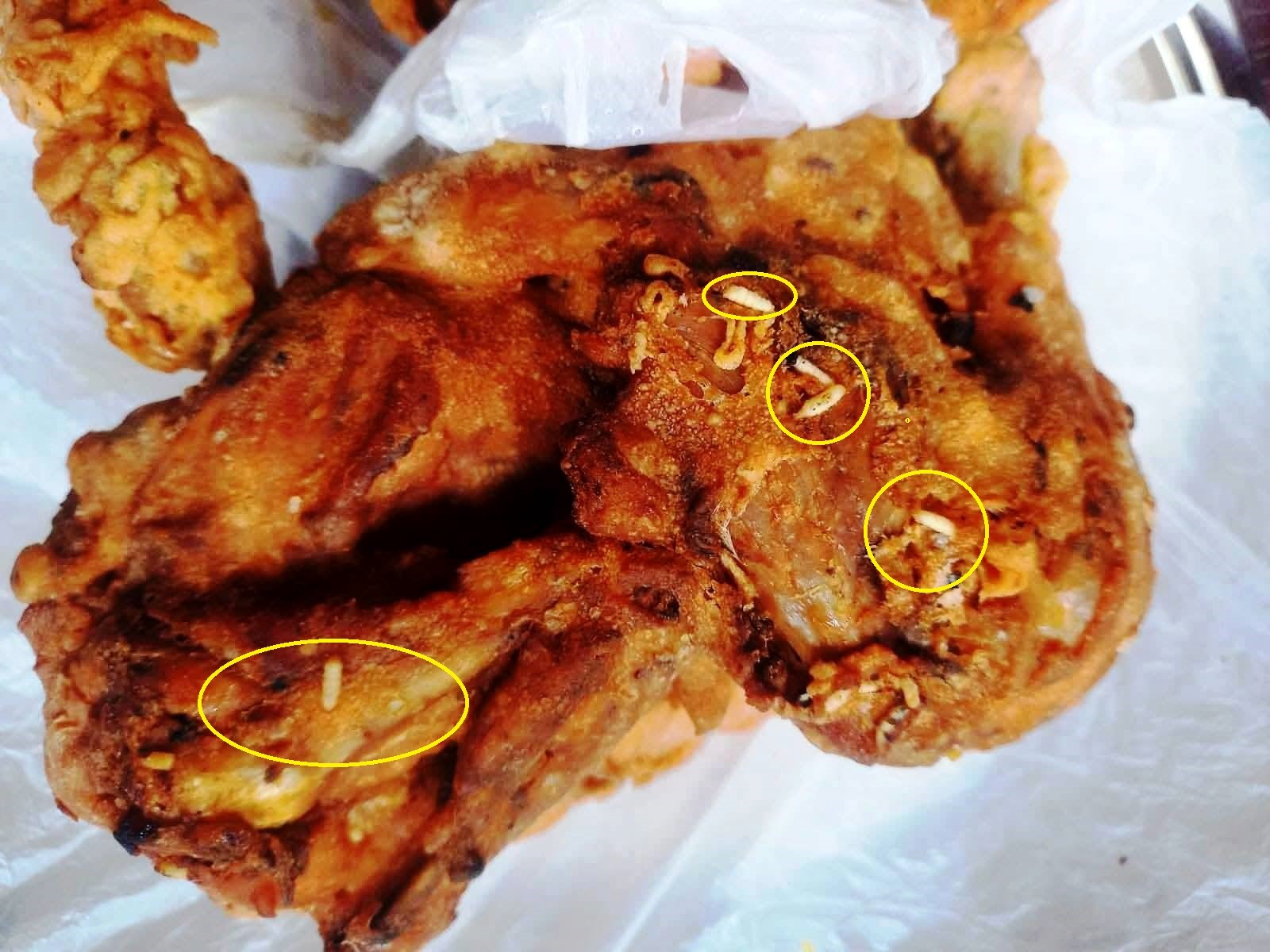புழுக்களுடன் பொரித்த கோழி வழங்கிய கடை உரிமையாளருக்கு அபராதம் விதிப்பு