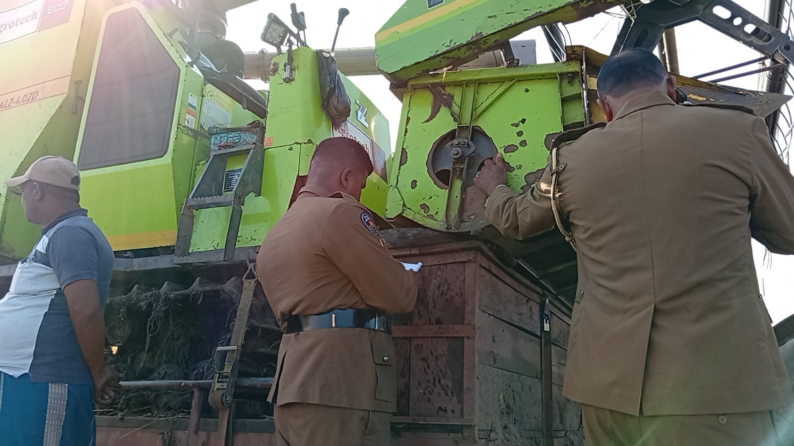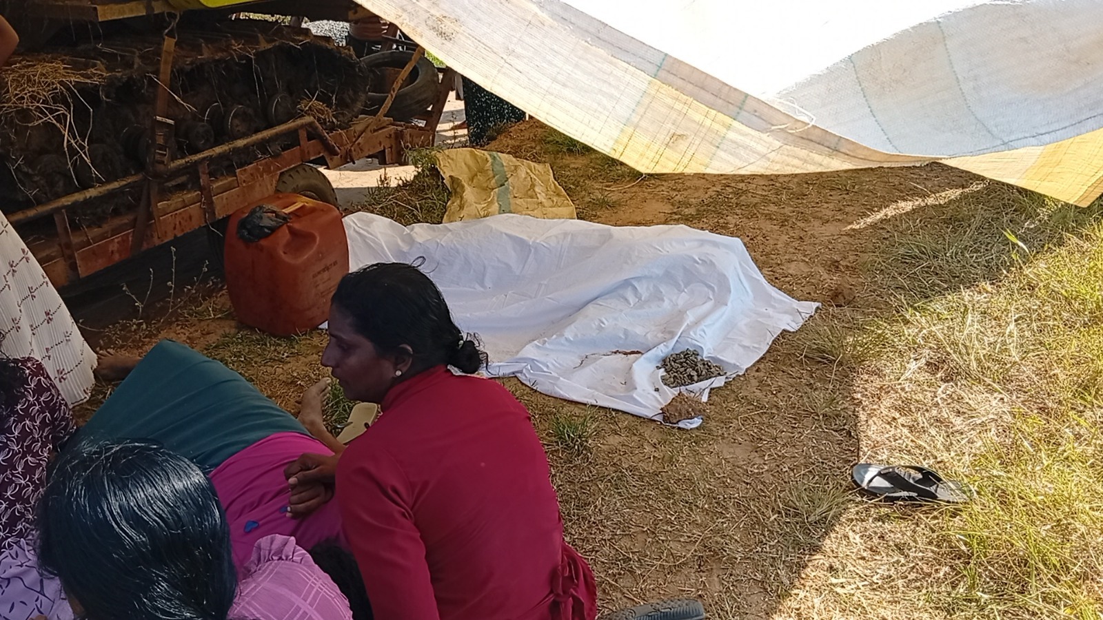 அறுவடை இயந்திரத்தை ஏற்றி உழவு இயந்திரத்தை செலுத்தி வந்த சாரதியின் சடலம் காரைதீவு பொலிஸாரினால் மீட்கப்பட்டுள்ளது.