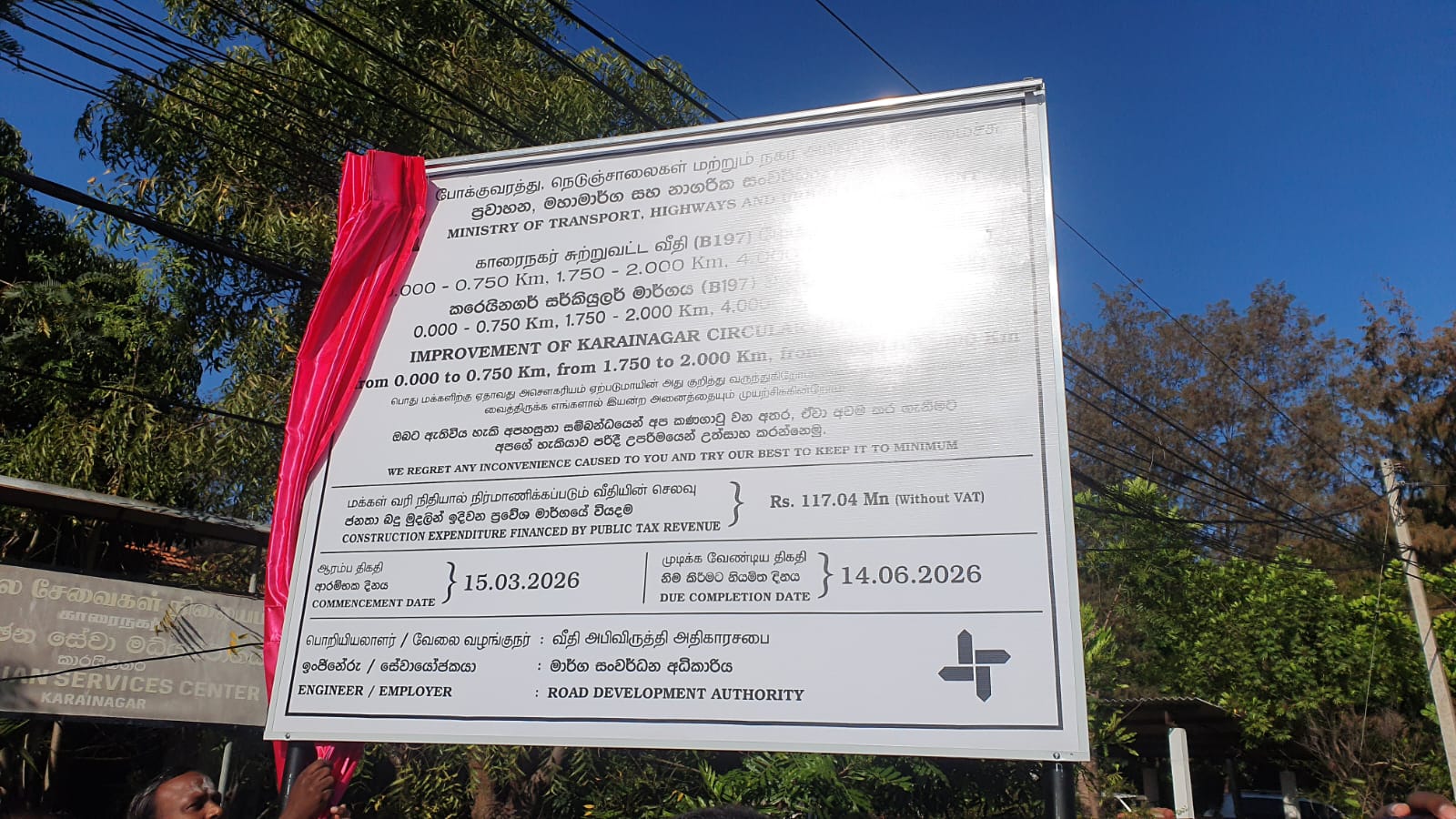 வளமான நாடு – அழகான வாழ்க்கை’ என்ற தொனிப்பொருளின் கீழ், மறுமலர்ச்சிக்கான பாதையாக யாழ். மாவட்டத்தில் 117.04 மில்லியன் ரூபா செலவில் காரைநகர் சுற்றுவட்ட வீதியின் புனரமைப்புப் பணிகளை உத்தியோகபூர்வமாக ஆரம்பித்து வைக்கும் நிகழ்வு இன்று ஞாயிற்றுக்கிழமை நடைபெற்றது.