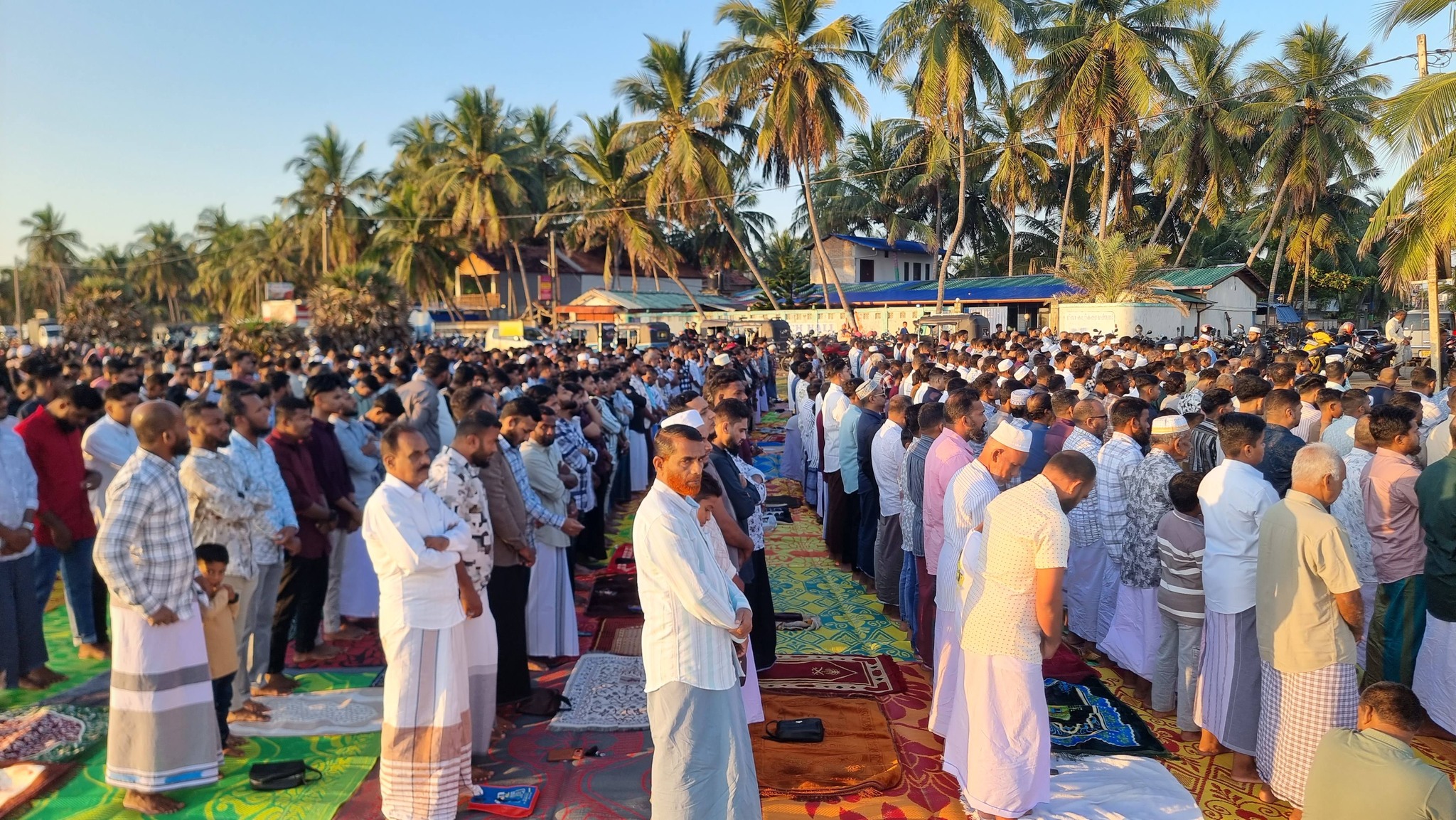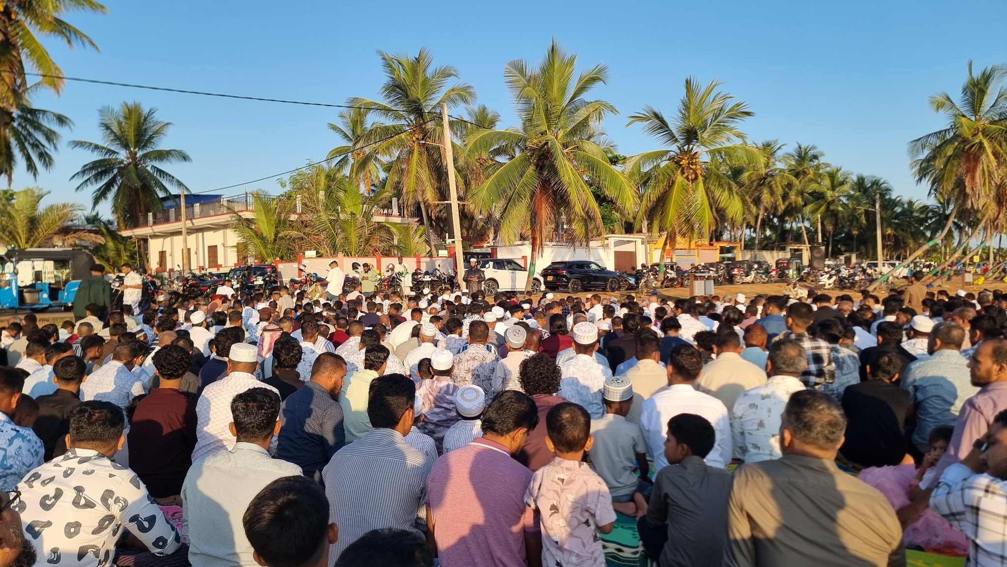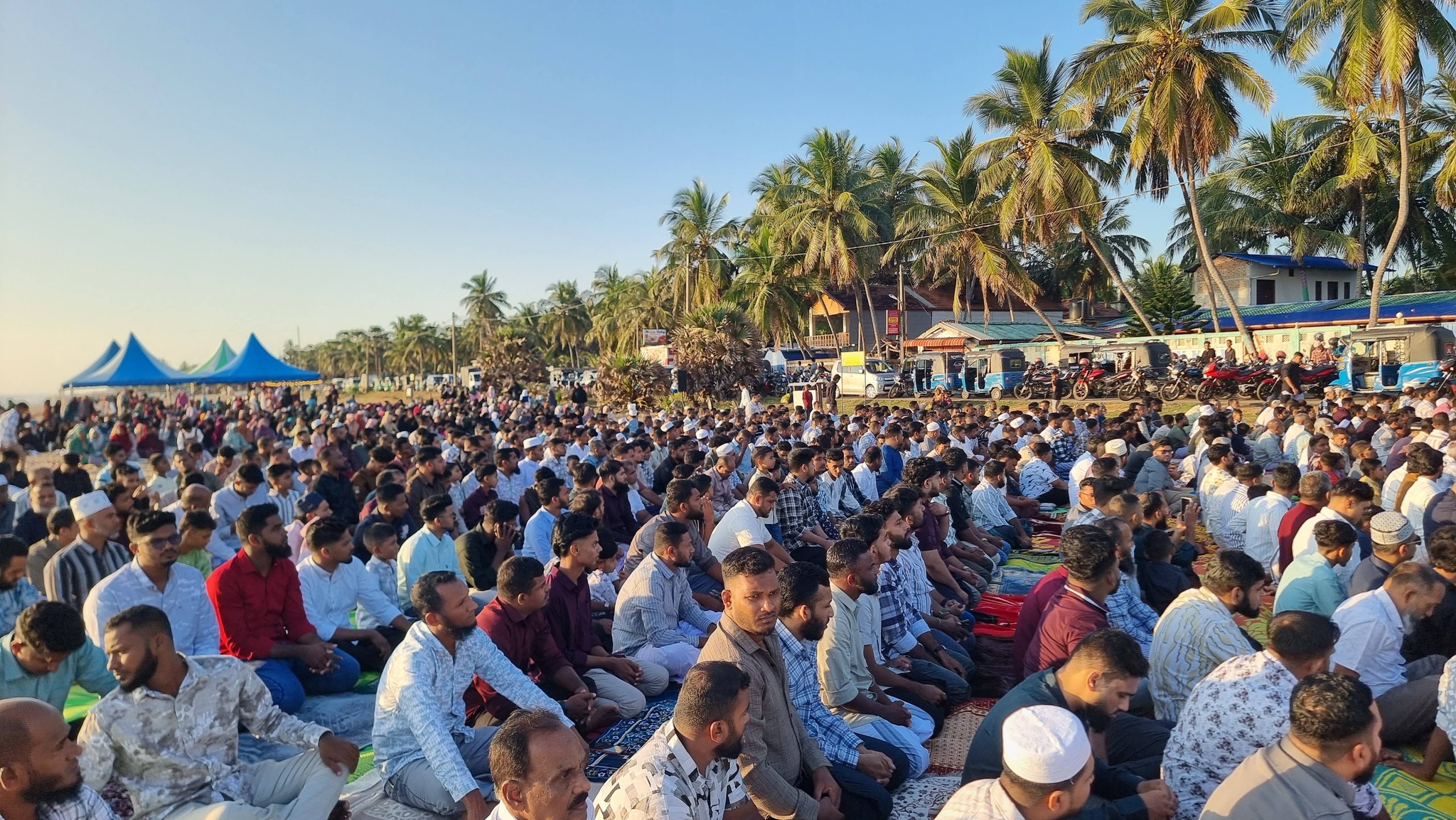 பெருநாள் தொழுகையையும் குத்பாவையும் மௌலவி எம்.என். முஹம்மத் (ஷரயி) நடத்தினார்.