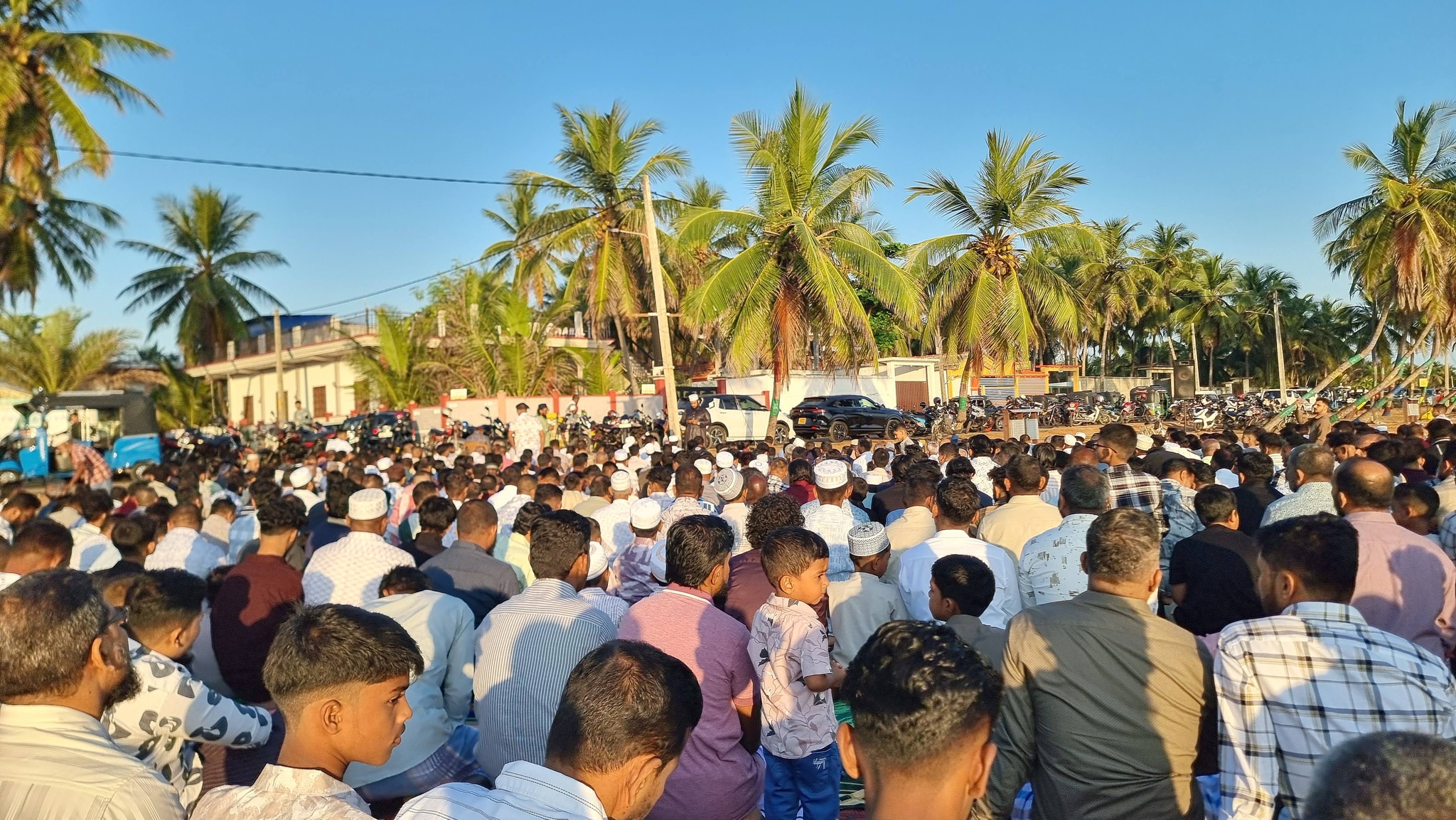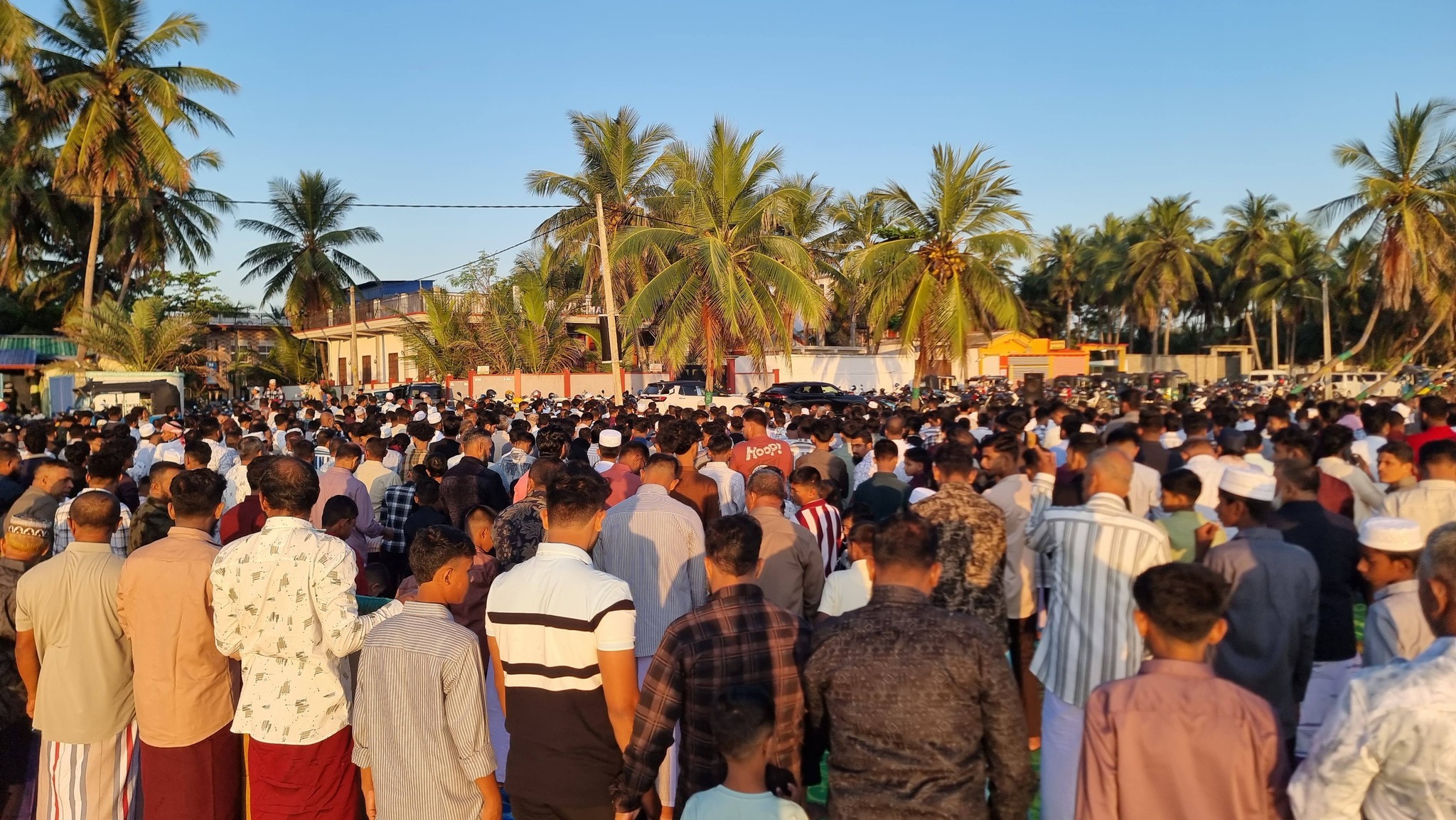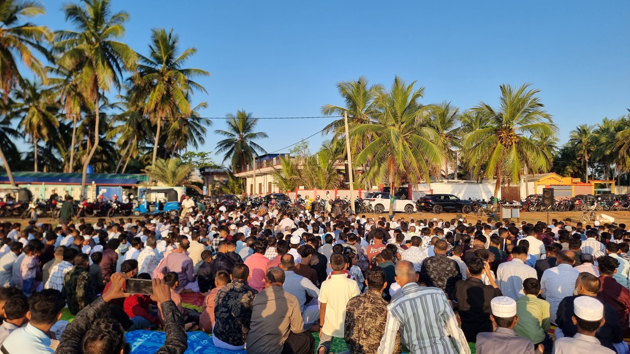 பெருநாள் தொழுகையையும் குத்பாவையும் மௌலவி எம்.என். முஹம்மத் (ஷரயி) நடத்தினார்.
