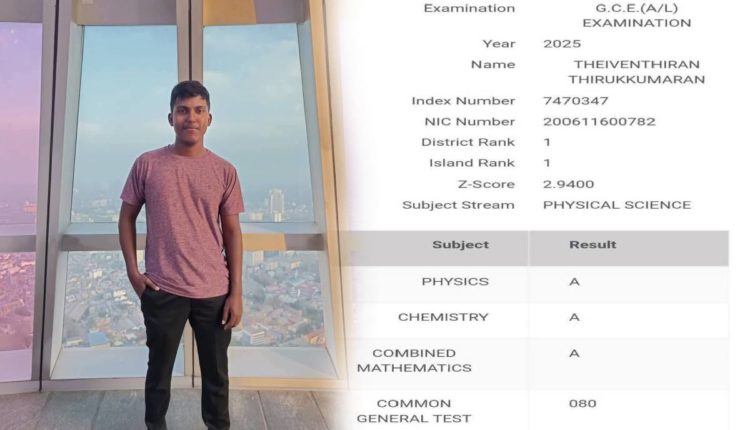 க.பொ.த உயர்தரத்தில் அகில இலங்கை முதல் இடம் பெற்ற தமிழ் மாணவன்