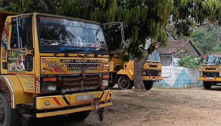 கிளிநொச்சியில் சட்டவிரோத மணல் அகழ்வில் ஈடுபட்ட டிப்பர் வண்டிகள்