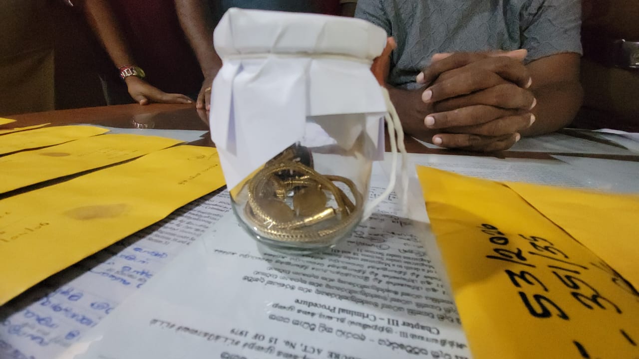 விசாரணைகளின் அடிப்படையில் , பன்றித்தலைச்சி அம்மன் கோவிலில் களவாடிய தாலிக்கொடியை தான் கிளிநொச்சி பகுதியில் உள்ள தாம் வழிபாட்டிற்கு செல்லும் ஆலயம் ஒன்றின் பிள்ளையார் சிலைக்கு பின்புறமாக மறைத்து வைத்திருப்பதாக வாக்குமூலம் அளித்திருந்தார்.