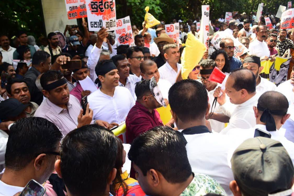 நாடாளுமன்றத்திற்கு முன் போராட்டத்தில் குதித்த எதிர்க்கட்சி ; கடும் போக்குவரத்து நெரிசல்