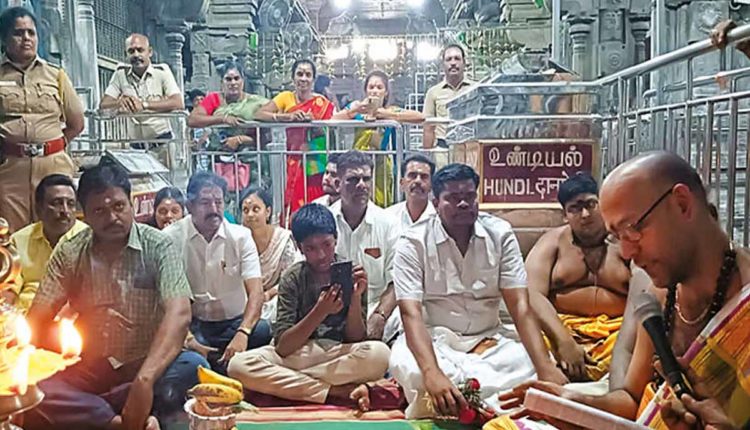 சிறப்பு பூஜைகள் நடைபெற்று பங்ஞசாங்கத்தை வாசிக்கத் தொடங்கினார் உதயகுமார்.