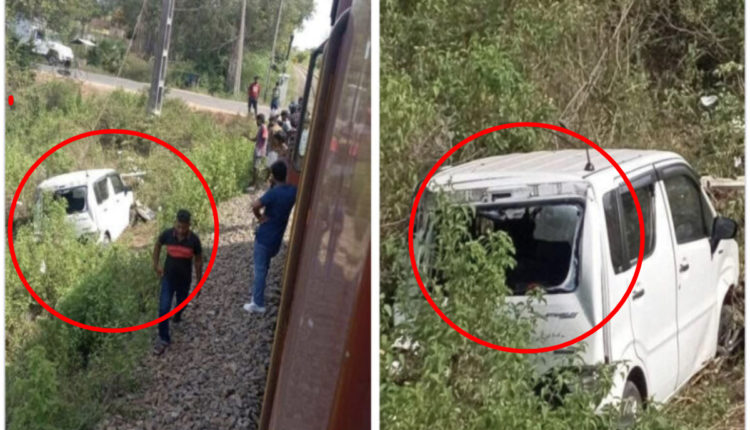 முறிகண்டியில் கோர விபத்து; ரயில் மோதி தூக்கி வீசப்பட்ட கார்