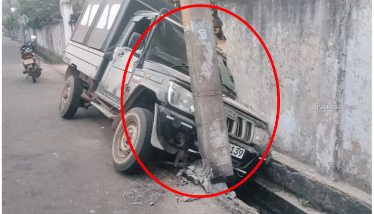 மின் கம்பத்தில் மோதிய ஜீப்பால் பல மணிநேரம் மின்தடை